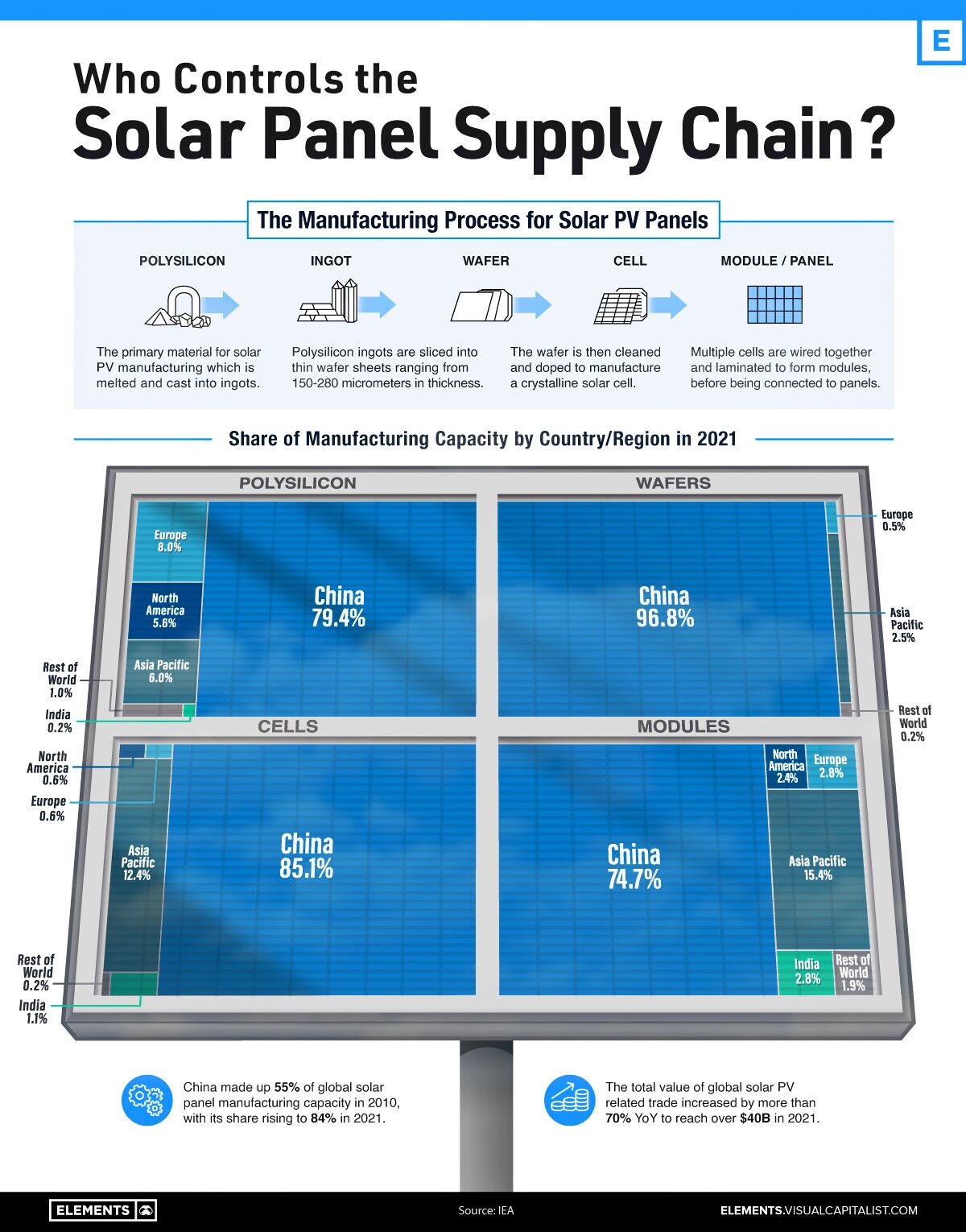 - Over 80% of global solar modules originate from China